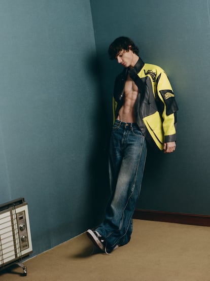 Lindez se estrenará en su séptima temporada, y anda ahora mentalizándose. Es consciente de que su fama crecerá en unos meses de forma elefantiásica, pero intenta llevarlo “con naturalidad”. A falta de datos oficiales, se calcula que más de 30 millones de personas en todo el mundo ven Élite. Esta proyección la ha convertido en una fábrica de estrellas posadolescentes de belleza apolínea. Omar Ayuso, Manu Ríos y Miguel Herrán son algunos de sus ejemplos más contundentes. Lindez no es una excepción. Su cara es angulosa, toda pómulos y mandíbula. Tanto que se diría diseñada con escuadra y cartabón. Su imponente 1,87 metros de altura no le hace parecer desgarbado, sino ágil y levemente felino. Ayuda el tener un cuerpo fibrado que le ha hecho desfilar por las pasarelas enfundado en prendas de Louis Vuitton, Prada o Versace. “Justo la semana pasada estuve en París, aprovechando un descanso en el rodaje de Élite”, explica. De momento compagina los dos mundos. “No son tan distintos”.