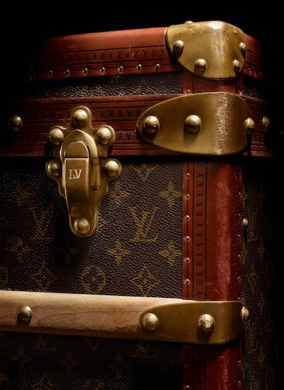 Mientras esperamos a Pierre Vuitton exploramos en qué se trabaja esta mañana en el taller de Asnières. Aquí todo se hace a petición y capricho suelto. A veces se permite a algunos clientes supervisar en tiempo real el progreso de sus encargos. Lo primero que encontramos es una réplica en resina del trofeo de la NBA: el equipo ganador ha encargado un baúl a medida para trasladarlo. Vemos el de la Eurocopa de fútbol y del último Campeonato Mundial de Fórmula 1. Los trofeos originales han llegado a Asnières en camiones fuertemente custodiados y se irán en un continente de alto lujo, hecho a mano y personalizado al extremo. Luego disfrutamos con la construcción de un arcón para una botella de Moët & Chandon y otro que contendrá varias botellas de un whisky carísimo. En otra mesa, un artesano trabaja en el estuche de un ukelele y otro retoca un cofre donde viajará una colección de 130 relojes de lujo. Se fabrica un baúl para guardar las llaves de un coche deportivo y otro muy grande para albergar una colección de 200 pinturas de Andy Warhol. En 2021, de estos talleres salió el Party Trunk (el baúl fiesta). El mundo salía de la pandemia y hubo quien quiso llevar la fiesta encima. Encargó un arcón equipado con una bola de discoteca con el monograma LV, tapas de espejo, vasos y copas de whisky, champán, coñac y capacidad para 30 botellas “caras y excepcionales”.