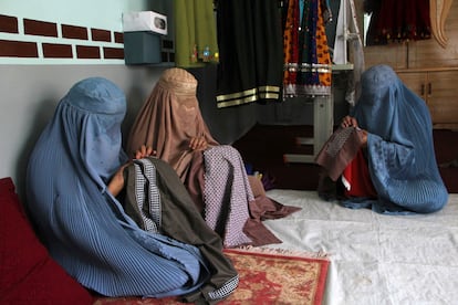 Pues eso, que madrugo para hacer mi parte, pero llevo dentro de mí un cuervo que se ríe. Un cuervo que me muestra esta foto en la que se ve (es un decir, no las podemos ver) a tres mujeres afganas encerradas en sus ataúdes de tela mientras cosen quizá otro féretro para sus hijas, o para sí mismas, al objeto de tener quita y pon, como suele decirse. Es posible que las ventanas de la habitación en la que se encuentran estén tapiadas, tal como ordenaron los talibanes el pasado diciembre que había que hacer en las viviendas habitadas por mujeres.