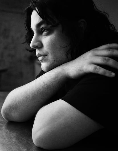 —Cuando venía de rodar Maricón perdido, fue una época fuerte. Tenía 23 años, era mi primer protagonista, justo pilló la pandemia y se me juntó todo. Verme [en un gigante cartel promocional de la serie] en Callao, yo con una mascarilla puesta en la cara, a 400 kilómetros de mis padres. No podía salir a la calle sin un dolor en el pecho, algo que me quemaba aquí constantemente.