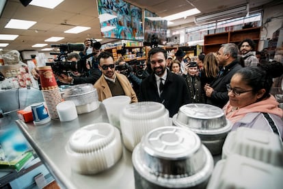 El hombre de la barba podría ser cualquier hombre. Lo habría sido para usted y para mí antes de que unas elecciones lo convirtieran en el alcalde de la ciudad más importante de EE UU. De hecho, espera su turno para comer cualquier cosa en un local cualquiera del Bronx neoyorquino. Por cualquier cosa, en estas circunstancias, nos referimos a un sándwich de huevo y queso. Observados desde la perspectiva actual, ni el hombre es cualquier hombre ni el sándwich es cualquier sándwich. Da la impresión de que la foto, obtenida a finales de octubre, hubiera ganado en decibelios.