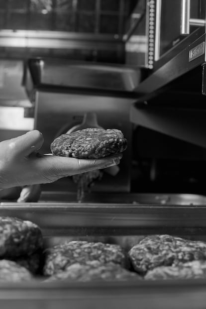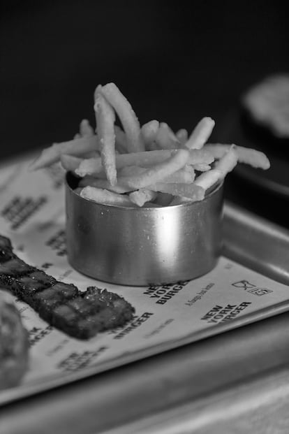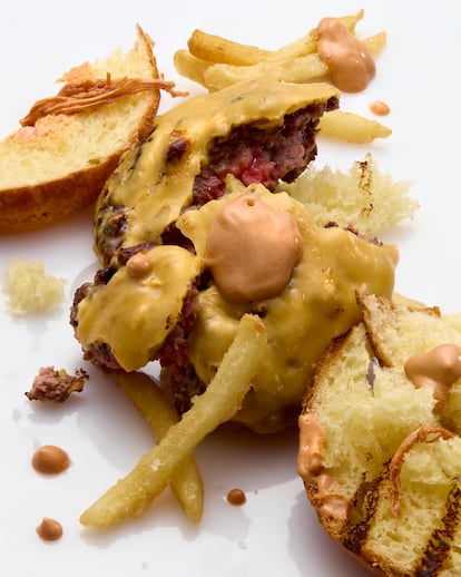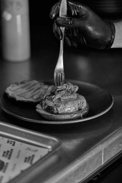 Ciertamente, en los últimos años, la hamburguesa vive una revolución constante, con cierta tensión entre los más clásicos y las propuestas de estilo más radical, como la irrupción de la smash burger, algo que no acaba de convencer a quienes apuestan por la carne de calidad. “A mí me parece una tontería”, dice Ana Galindo. “Es para quien no le gusta la carne. A quien le gusta el sabor de la carne eso no le gusta”, añade mientras promete no tenerla nunca en la carta de Alfredo’s. “Llegamos a hacer un experimento, pero el cliente es soberano y leímos que no era el momento. En la foodtruck sí las hacemos en la plancha, pero aplastamos poco, la verdad, no nos gustan las costras”, reconoce Díaz-Pinés. En New York Burger también le han dado una vuelta al concepto para no rendirse bajo la presión de esta moda. “La smash no requiere una calidad grande de carne, cualquiera te vale”, apunta Óscar Colmenares. “Al quedar tan tostada, no tiene jugos ni nada. Lo que le da el sabor son las salsas. Nosotros hacemos una a nuestra manera, más fina que nuestras hamburguesas normales pero sin llegar a lo que se ve hoy en día. Así sigue estando jugosa”.