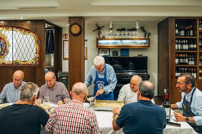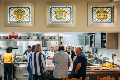 “Muchos clientes en el restaurante ya me decían, que cómo es que siendo los vascos tan avanzados, no podían entrar las mujeres a las sociedades”, reconoce Elena Arzak. “Yo les decía que son tradiciones, qué les iba a decir. Pero bueno, tampoco vamos a magnificar esta historia de las mujeres sí o las mujeres no porque es meterse en un jardín que para qué”. Para ella, lo realmente importante es el papel gastronómico que desempeñan estos lugares: “Las sociedades, para mí, cumplen un papel muy importante en la transmisión del legado de la cocina tradicional vasca. Y la gente joven que las visita va a saber lo que es un bacalao al pil-pil, lo que son unos pimientos rellenos, o unas alubias… la verdad es que hay muchos platos que, si no se hicieran en las sociedades, dejarían poco a poco de existir”. El trasfondo de esta conversación, y de todas las mantenidas estos días en San Sebastián, es precisamente ese: la dificultad creciente de poder comer o cenar de manera tradicional con buen producto y sin arruinar tu cuenta corriente. Y aquí Elena Arzak lanza el dardo: