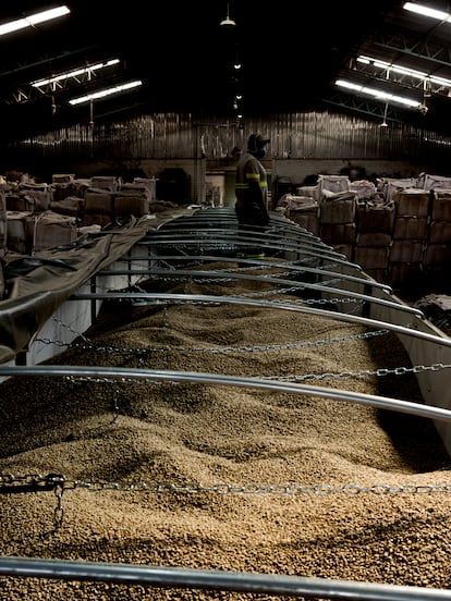 Las descomunales naves de la cooperativa Cocatrel (con 9.000 socios, exporta a 40 países) lucen absolutamente desangeladas. En 2024 movió 2,3 millones de sacas, pero ahora el stock se ha desplomado por las malas cosechas y porque el mercado incentiva la venta veloz.