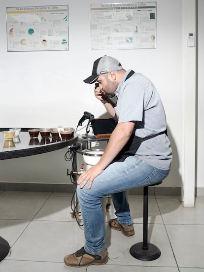 De vuelta a lo tangible, los catadores evalúan las muestras. Observan el grano para luego probar la bebida con gestos rápidos, mecánicos. Sorben ruidosamente de un vasito de cristal, saborean y escupen inmediatamente. Ninguna máquina sustituye al paladar. Pero sí otras muchas tareas. Aquellas filas de 1.500 camiones que, en el pico de la cosecha, esperaban tres días para entregar la carga pasaron a la historia. La mecanización ha agilizado y multiplicado el negocio, que busca nuevos mercados.