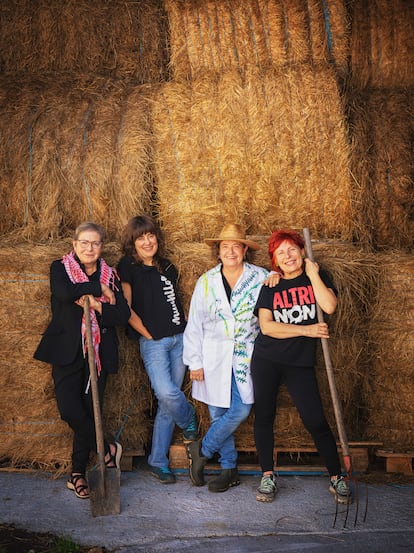 Esa realidad se encuentra hoy en el yogur bebible y los fermentos —garums, kombuchas— en los que Culler de Pau lleva trabajando ya tres años. Pero también en Muuhlloa, una casa de cosmética rural que ha elaborado una crema facial y un hidratante vaginal a base de avea moura. Las cinco ganaderas y agricultoras que integran este laboratorio que mezcla leche fresca de vaca con extractos vegetales autóctonos nos reciben en Granxa Maruxa. Un idilio heidisiano de prados verdes atravesados por animales que mugen, un establo y una casa-mural, donde los árboles dibujados se alzan sobre la pared y parecen bailar con el viento.