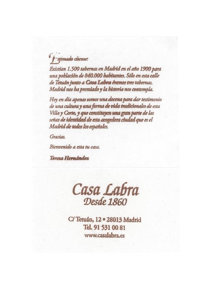 Pero Felipe Hernández no es el único con esta iniciativa de recuperación de la historia cotidiana. En distintas ciudades han surgido colectivos, como Paco Graco, que rescatan de las fachadas carteles, rótulos y tipografías populares. “Todo está siendo altruista y en manos privadas. Las instituciones deberían proteger este patrimonio gráfico porque habla de la identidad de una ciudad, de gente que llegó de los pueblos con una mano delante y otra detrás, creaba un negocio y con él se iba construyendo una ciudad como Madrid, en la que nadie es de aquí”. Y al escuchar al fotógrafo, uno comprende que una servilleta puede trascender del papel y convertirse en el rastro de una biografía no escrita.