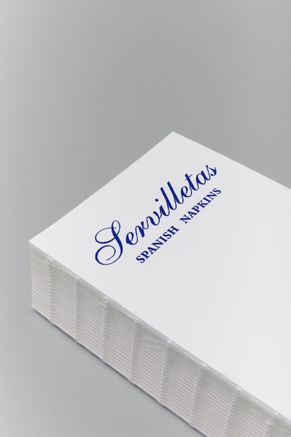 “Comencé a coleccionarlas en 2014. Cuando tuve unas 300, en 2017, empecé a fotografiarlas sobre una placa de mármol que tenía en el estudio. Al principio las documentaba para mí, pero las fui subiendo a Instagram y tuvieron tan buena acogida que decidí seguir”, recuerda. Hoy supera el millar. Todas son españolas, aunque cuenta que en países como Portugal, Italia o Francia también existen de una manera más minoritaria. En España son comunes porque el bar se concibe no solo como un negocio, sino como una extensión del hogar, un punto de encuentro donde se crea una comunidad alrededor de la barra. Y durante décadas, Hernández cuenta que también ha sido un espacio donde el diseño, anónimo y funcional, ha encontrado su espacio en objetos aparentemente secundarios como las servilletas. “Antes era más popular personalizar las cosas. Todo se cuidaba más. Las barras eran de materiales más nobles y se usaban posavasos del propio local para protegerlas. Hoy los ponen solo en cuatro coctelerías y ya”, dice de un modo más reivindicativo que nostálgico.