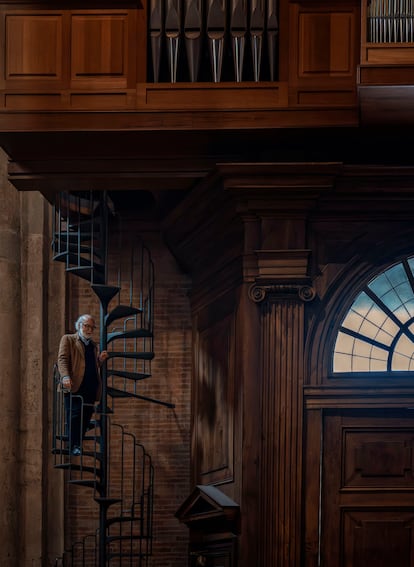 El dilema que explica Ghielmi es el que articula, desde mediados del siglo XX, la interpretación historicista, que defiende que la música de cada época debe tocarse con instrumentos parecidos a los originales. El milanés lidera su propia formación, La Divina Armonia, toca el clave y ha dirigido orquestas, pero siempre sin alejarse demasiado de San Simpliciano, en cuya creación participó. Ante los teclados, a los que se llega por una larga escalera de caracol, explica la importancia de que el instrumento sea mecánico, para transmitir a cada nota la sensibilidad de los dedos. Cada órgano es un mundo y este es el suyo. “Un virtuoso del piano hace cosas dificilísimas, pero siempre del mismo modo. Un virtuoso del órgano es capaz de cambiar rápidamente de un instrumento a otro entendiéndolo bien y reaccionando con velocidad. Por eso es necesario haber tocado muchos órganos distintos”.