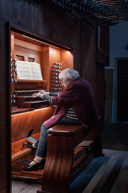 El primer órgano que Montserrat Torrent tocó, a los 18 años, estaba en una capilla en Santa Coloma de Farners (Girona), donde su familia veraneaba. “Era un órgano sencillo, sin registros de pedal, pero era bueno”, explica. “Intenté tocar cosas absurdas, como los nocturnos de Chopin, pero no había forma de que sonaran”. De vuelta a Barcelona, acudió al conservatorio. “Pero el profesor de órgano me dijo que si iba en plan amateur no me daba clase. Yo le dije que no, que era vocación. Pero era mentira”, recuerda con una sonrisa. “Así que me castigó y me tuvo meses haciendo escalas con los pies. Un día se arrepintió y me dio a tocar un coral de Bach. De repente vi que podía tocar tres sonoridades distintas sin necesidad de otros instrumentos, solo poniendo registros. Vi el cielo abierto”.