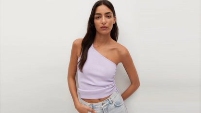 También de canalé, este top de Mango es de su gama Committed (confeccionada con fibras y procesos de producción sostenible). Al llevar un fruncido en uno de los laterales, puedes elegir llevarlo suelto y largo o anudado convirtiéndolo en crop. Está disponible en lila o en negro y tiene un 35% de descuento.