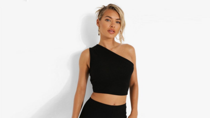 Con doble asimetría (tanto en los tirantes como en un favorecedor escote muy original), este top está disponible en Shein en hasta 18 colores diferentes. Es elástico, crop, con diseño de canalé y está disponible desde la XS hasta la XL.