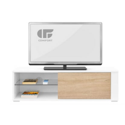 Mueble para la televisión aglomerado con unas dimensiones de 50 centímetros de altura, 160 centímetros de ancho y 35 centímetros de profundidad. Es la combinación perfecta entre diseño y funcionalidad, ya que gracias a su estilo nórdico aporta luminosidad al hogar y sus estantes ofrecen una gran cantidad de espacio de almacenamiento. Sus cuatro patas son antideslizantes y llevan incorporadas una protección para no rayar el suelo.