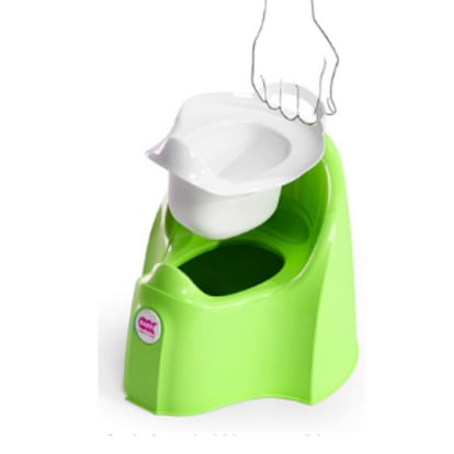 Orinal multifuncional para niños, disponible en los colores rosa y azul. Tiene un contorno liso, lo que lo convierte en un asiento cómodo y agradable. El recipiente que contiene en el interior se quita fácilmente, para una limpieza rápida o para usarlo como adaptador para los niños en un WC normal. Asimismo, incluye protección antisalpicaduras, para evitar que la orina se derrame y mantener el baño limpio.