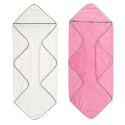 El kit de baño para bebés contiene una toalla en formato capa (100 x 100 centímetros) fabricada al 100% con algodón y con unas costuras acabadas en rizo, por lo que garantizan una mayor durabilidad.