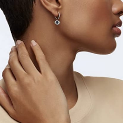 Se trata de una opción versátil, original y llamativa diseñada por Swarovski, unos pendientes de aro para mujer inspirados en el clásico ojo turco a modo de talismán.