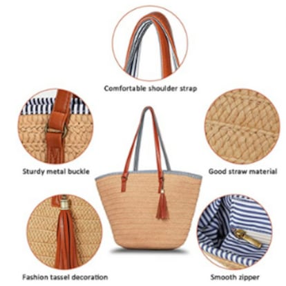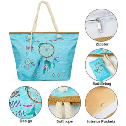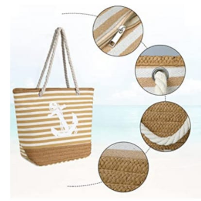 Este exclusivo bolso para la playa es ideal para ir a la moda y, al mismo tiempo, llevar todos los complementos que necesites de manera cómoda, ya que ofrece una gran cantidad de espacio en su interior (30 x 16 x 34 centímetros) y está equipada con un cierre de cremallera extraseguro.