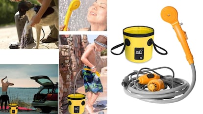 “La ducha es estupenda”, dice de ella uno de los más de 2.400 usuarios de Amazon que la han reseñado. ”Ideal para cuando voy a bucear o a playas donde no hay duchas”. Y es que este kit de cubo plegable y cabezal de ducha es una solución genial para asearse en cualquier sitio. Dispone de un enchufe para conectar con el encendedor del coche y se acompaña de gancho en “S” y una ventosa para colgarla. En Amazon se pueden conseguir en tres colores: amarillo, azul y naranja.