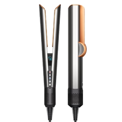 Por qué lo recomendamos: su planteamiento es muy similar al de Dyson, aunque con ciertas diferencias. En este caso, propone colocar distintos cabezales en la zona en la que sale el aire: el orden que recomienda la marca es colocar el cepillo, para desenredar a la vez que se empieza a quitar la humedad del cabello; colocar el concentrador para el secado, incidiendo sobre todo en las raíces, y utilizar la plancha sin nada mechón a mechón para secar y pulir, terminando con aire frío. Lo cierto es que así es como he conseguido los mejores resultados —sobre todo la reducción de encrespamiento es brutal—, aunque he tenido que invertir algo más de tiempo que con otras opciones: en total, no bajaba de 20 minutos. Y aunque colocar estos accesorios es facilísimo (porque van con imán), tras algunos días de pruebas finalmente pasé de la toalla a la función secador (sin el cabezal concentrador) y luego ya a la plancha. En este caso, necesito 2-3 pasadas para que quede completamente seco, ajustando la temperatura de las placas a su máximo, 150º —tiene 3 opciones—; en las inferiores el acabado en mi pelo no es tan pulido. El uso es muy sencillo, con solo dos botones: uno para el aire frío y otro para regular la temperatura.