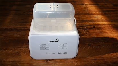 Lo que más me ha llamado la atención del esterilizador de biberones Growsy es que, pese a su tamaño compacto, ofrece función de secado y es eléctrico con vapor. Su capacidad es menor —solo dos biberones a la vez—, con un ciclo de 15 a 20 minutos, por lo que está más pensado para un uso ocasional o para familias con un solo bebé.