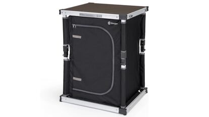 Ligero y portátil: se monta en segundos. Así es este armario plegable para camper con estructura de aluminio y bandeja resistente a salpicaduras. Un mueble que proporciona suficiente espacio para almacenar diferentes utensilios de cocina en su zona inferior. En su parte superior se puede colocar una cocina de gas.