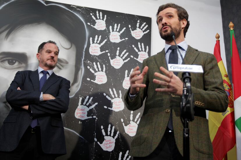 Pablo Casado ha recordado a Miguel Ángel Blanco en un acto al que han asistido los padres de este concejal del PP asesinado por ETA en julio de 1995. La sede de su partido en Ermua cuenta con un mural con el rostro de Blanco, a quien el presidente del PP ha aludido en varias ocasiones. También ha censurado que el PSOE y el PNV hayan pactado la administración de los presos, algo que a su juicio se convierte en “beneficios y un régimen arbitrario hacia los más de 300 etarras que no se han arrepentido”. Casado ha planteado que estas ventajas solo llegan si los condenados colaboran para “resolver los crímenes impunes”