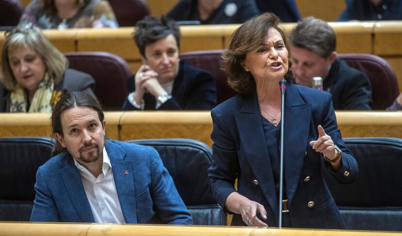 La tensión entre el PSOE y Unidas Podemos, desatada por la ley de violencia sexual, no remite: este miércoles se repitieron los rifirrafes dialécticos entre representantes de ambos grupos. El asunto, según coinciden fuentes de ambos sectores, no es puntual. Detrás hay una batalla de fondo por el liderazgo del feminismo en pleno 8 de marzo entre Carmen Calvo, vicepresidenta y exministra de Igualdad, muy vinculada a este movimiento, e Irene Montero, actual ministra. La guerra deja heridas graves entre Unidas Podemos y Calvo y agrieta la coalición, según diversas fuentes.