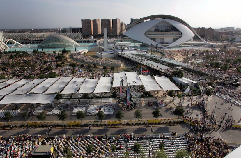 El papa Benedicto XVI visitó Valencia en julio de 2006 para cerrar el V Encuentro Mundial de las Familias. La organización del viaje se insertó en la política “de grandes eventos” que entonces abanderaba la Generalitat, gobernada por el PP. Se anunció la llegada de dos millones de peregrinos. Se compraron 7.000 urinarios portátiles por 2,6 millones. Se alzó un altar con microclima por un millón y medio...