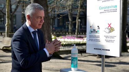 El también candidato del Partido Nacionalista Vasco (PNV) para las elecciones adelantadas al próximo 5 de abril citó el jueves al resto de partidos a un encuentro este lunes en la sede del Gobierno, en Vitoria. El propósito era estudiar, después del encuentro programado el sábado con el presidente del Gobierno, Pedro Sánchez, y el resto de presidentes autonómicos, la pertinencia de un aplazamiento electoral. “Estamos analizando legalmente y jurídicamente las situaciones que pudieran afectar a la campaña electoral y a las elecciones. Por eso hemos convocado a los partidos el lunes para que todas las decisiones que se tomen sean consensuadas”, ha informado.