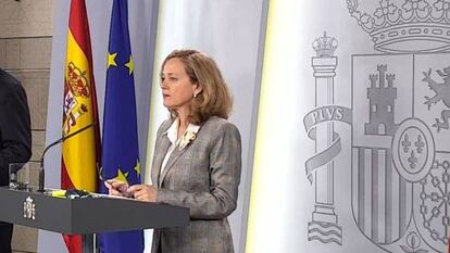 Calviño ha insistido varias veces en que en esta decisión de mantener algunos sectores activos aunque con medidas de seguridad tiene el apoyo de patronal y sindicatos, con los que se reunió poco antes de su comparecencia. Con tono vehemente, y claramente molesta y con gestos de sorpresa ante una pregunta que apuntaba que ella es, como señalan fuentes del Ejecutivo, la que con más fuerza está rechazando medidas más profundas de defensa de los trabajadores que impliquen más gasto y más deuda, Calviño ha defendido la posición actual del Gobierno y ha insistido en que los agentes sociales las respaldan. “Las medidas que ha aplicado España son las más restrictivas de nuestro entorno, y ya están ralentizando mucho la economía. Los agentes sociales nos han dicho que la prioridad es proteger a los trabajadores pero salvaguardando la actividad y el empleo. Para ellos es clave evitar el cierre de empresas que después suponga un lastre para recuperar la actividad cuando se resuelva la emergencia”, ha asegurado la vicepresidenta.