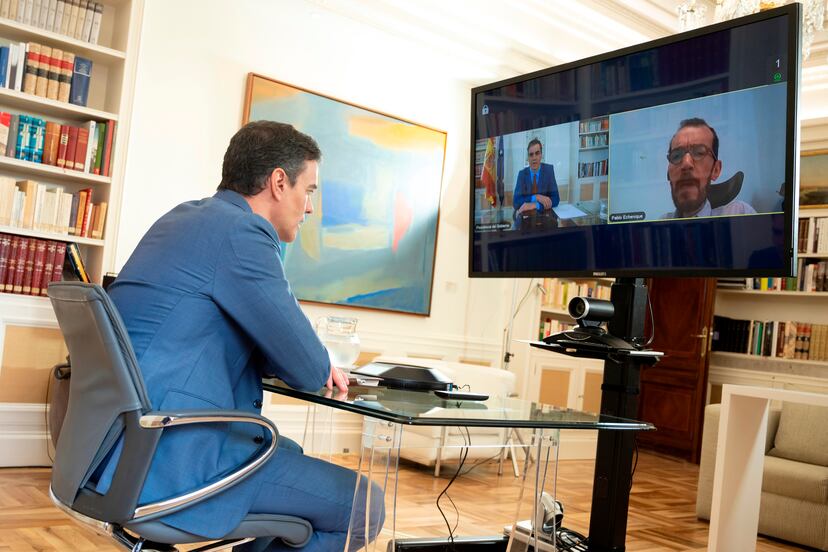 No hay ninguna expectativa de acuerdo entre el Gobierno y el PP, pero al menos ya hay día y hora para una reunión. Pedro Sánchez y Pablo Casado se verán por videoconferencia el lunes a las 11.00. El líder de la oposición ha retrasando varios días el encuentro para mostrar así su malestar –será el último en reunirse, y no el primero como pretendía el Ejecutivo– pero no llega al extremo de Vox, que se ha negado a asistir. La ministra portavoz, María Jesús Montero, ha anunciado la cita esta vez después de cerrarla con el PP y ha confiado en que el principal partido de la oposición acepte participar en la llamada “mesa de la reconstrucción” la próxima semana, como han hecho todos los demás grupos, incluida ERC, con la que el presidente se reunió hoy.