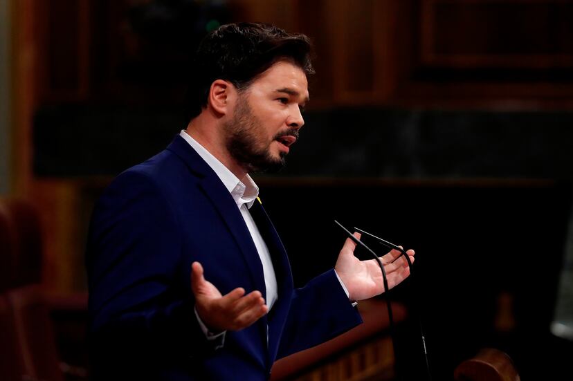 Sabedor del frente que se le abre al Gobierno, Pablo Iglesias conversó varios minutos con el portavoz de ERC antes de que comenzase la sesión. Pero su intento para reconducir la relación resultó estéril. El movimiento de Inés Arrimadas, que mantuvo el respaldo de Ciudadanos al estado de alarma tras acordar unas condiciones con el Ejecutivo, enrocó a Esquerra en su viaje de la abstención al voto en contra. Como Vox, Junts per Catalunya, la CUP y Foro Asturias. “Decir que ERC vota junto a Vox es como decir que el PSOE vota junto a Vox cuando veta comisiones de investigación del Rey emérito. Es falso”, negó Rufián. Sánchez le dio la razón. “Nosotros estamos por prorrogar políticas excepcionales, no estados excepcionales. Hay alternativa a la recentralización, militarización y transgresión de derechos civiles”, argumentó el dirigente de Esquerra.
