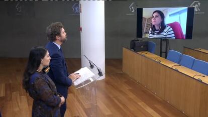 El portavox del Grupo Parlamentario de Vox, Iván Espinosa de los Monteros, ha declarado esta tarde, en una rueda de prensa telemática en el Congreso, que ha podido hablar con Ortega Smith estos días y que “está en muy buen estado de salud, con muy buen ánimo, trabajando desde el hospital donde está por precaución, revisando su salud y dando también mucho trabajo también en el ámbito del Ayuntamiento y el Congreso. Muchas gracias, pero está muy bien”, ha concluido.