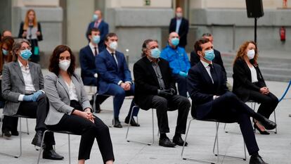 El enemigo común también unió este viernes a socios enfrentados. Díaz Ayuso y Aguado, quien primero impulsó la solicitud de la Comunidad a la fase 1, criticaron al Gobierno por haberles denegado el avance en la desescalada. También Casado apoyó explícitamente la petición para abandonar la fase 0. El líder del PP criticó la cuarentena de 15 días para quienes visiten España propone establecer pasaportes inmunológicos. Solo un 5% de los españoles se ha contagiado de coronavirus, según los primeros datos del estudio de prevalencia.