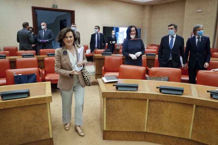 El Gobierno quiere que esta quinta, y parece que última, prórroga del estado de alarma que este miércoles votará el Congreso suene a otra música. “Es radicalmente diferente”, aseguró la vicepresidenta primera, Carmen Calvo, buscando un aval que en vísperas de la votación aún no está claro. Calvo presentó en su comparecencia este lunes en la Comisión Constitucional del Congreso la próxima prórroga como la de la “cogobernanza” entre el Gobierno y las comunidades autónomas y aseguró que si algunos territorios van más rápido en las fases de desescalada por el control de la pandemia se podría levantar “allí donde avancen más”. Una medida que el portavoz parlamentario del PNV, Aitor Esteban, había solicitado al Gobierno hace dos semanas cuando dio su apoyo in extremis a la cuarta extensión de la medida.