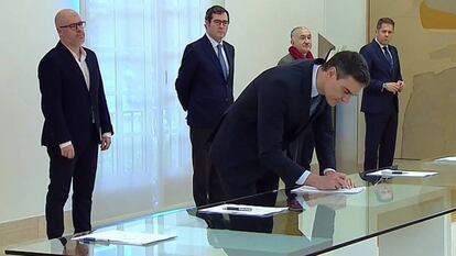 Casi a la misma hora que se conocía el pacto alcanzado ayer entre el PSOE y Podemos con Bildu, acababa una reunión del diálogo social para estudiar la prolongación de los ERTE por sectores más allá del 30 de junio. Ese diálogo es lo que ahora CEOE y Cepyme, una de sus partes, señala como dinamitado con el acuerdo que habla de derogar “de forma íntegra” la reforma laboral de 2012. El comunicado de las organizaciones empresariales, emitido antes de las ocho de la mañana, es muy duro. Habla del texto conocido ayer como “irresponsabilidad mayúscula” y “desprecio indignante al diálogo social, al que dinamita”. Era solo un aperitivo de lo que estaba por venir, a mediodía, en una reunión telemática de la cúpula de la patronal (presidente y vicepresidentes), que ha decidido paralizar las relaciones que mantienen con el Gobierno.