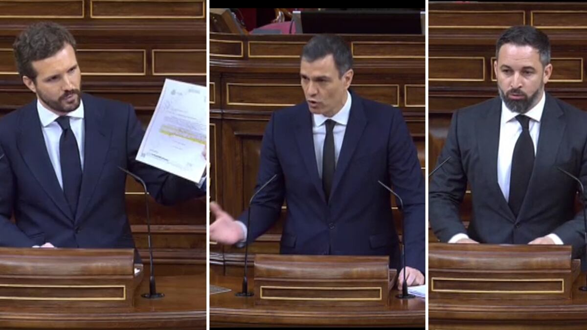 El líder de Vox, Santiago Abascal, ha rechazado también como Casado las apelaciones a la unidad y a obviar la crispación y los insultos de Sánchez, y ha arremetido de nuevo otra vez con fijación casi monográfica contra el vicepresidente segundo, Pablo Iglesias. A Sánchez le ha recriminado su máxima al levantar la voz a favor del 8-M y rebatió: “¡Gritar viva el 8-M es como gritar viva la enfermedad y la muerte!”. A Iglesias le ha recordado que fue él mismo el que presumió de su padre como militante del FRAP, para llamarle terrorista, y ha aludido incluso a su abuelo. También ha recurrido a sus clásicos ataques al Grupo Prisa, editor de EL PAÍS. Al vicepresidente le ha advertido de que acabará teniendo que rendir cuentas ante los tribunales y los españoles y le ha reprochado que se marche del hemiciclo durante sus intervenciones: “Que aproveche ahora, que ya tendrá tiempo de verlas desde una pantalla de televisión cuando esté en la cárcel”.