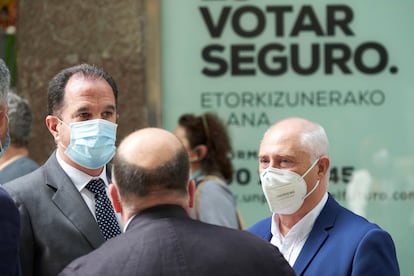 Como en una escena de una película distópica, los vascos y gallegos que vayan a votar el próximo 12 de julio en las elecciones autonómicas esconderán su rostro tras una máscara que tendrán que retirarse momentáneamente para que los miembros de la mesa electoral puedan comprobar que tras ella está realmente quien dice su DNI. En las primeras elecciones con mascarilla, el miedo al contagio flotará en el aire como el temido virus. La jornada electoral, en condiciones inéditas en la democracia española, ha provocado también una situación legal sin precedentes: las costuras de la Ley Orgánica del Régimen Electoral General (Loreg) se están forzando al máximo, hasta desbordarlas, para facilitar el voto en condiciones de seguridad sanitaria y evitar una caída drástica de la participación, a petición de los Gobiernos gallego y vasco.