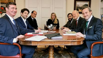 Los muñidores de la operación para abrir en España una sucursal del centro de Maréchal-Le Pen en Lyon han sido los fontaneros del líder de Vox, Santiago Abascal: su mano derecha, Kiko Méndez-Monasterio, y Gabriel Ariza, hijo del dueño de El Toro TV y socio con el anterior de Tizona (la empresa que organiza los actos de Vox); además de Javier Tebas Llanas, hijo del presidente de La Liga.