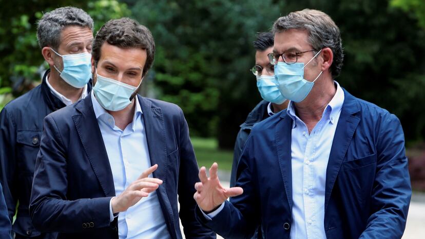 Quienes pronunciaron estas palabras, con 24 horas de diferencia, pertenecen a la misma formación política. Son los candidatos del PP a las elecciones gallegas y vascas del 12 de julio, Alberto Núñez Feijóo y Carlos Iturgaiz, respectivamente. El primero encabeza la llamada ala moderada del PP que, de forma intermitente, pide enderezar el rumbo cuando cree que su partido se escora a la derecha; y ahora acaricia la posibilidad de su cuarta mayoría absoluta, según las encuestas. El segundo, nombrado por Pablo Casado a 42 días de los comicios —fijados para el 5 de abril antes de ser aplazados por el coronavirus—, obtendría solo un 2,4% de los votos, según el CIS, pese a presentarse en coalición con Ciudadanos. Una alianza que se llevó por delante al líder de los populares vascos, Alfonso Alonso —sacrificado por Casado en la negociación de las listas electorales con Inés Arrimadas— y fue rechazada de plano por Feijóo, que no permitió repetir esa operación en Galicia. Por todo esto, el 12-J será también un examen para el líder del PP.