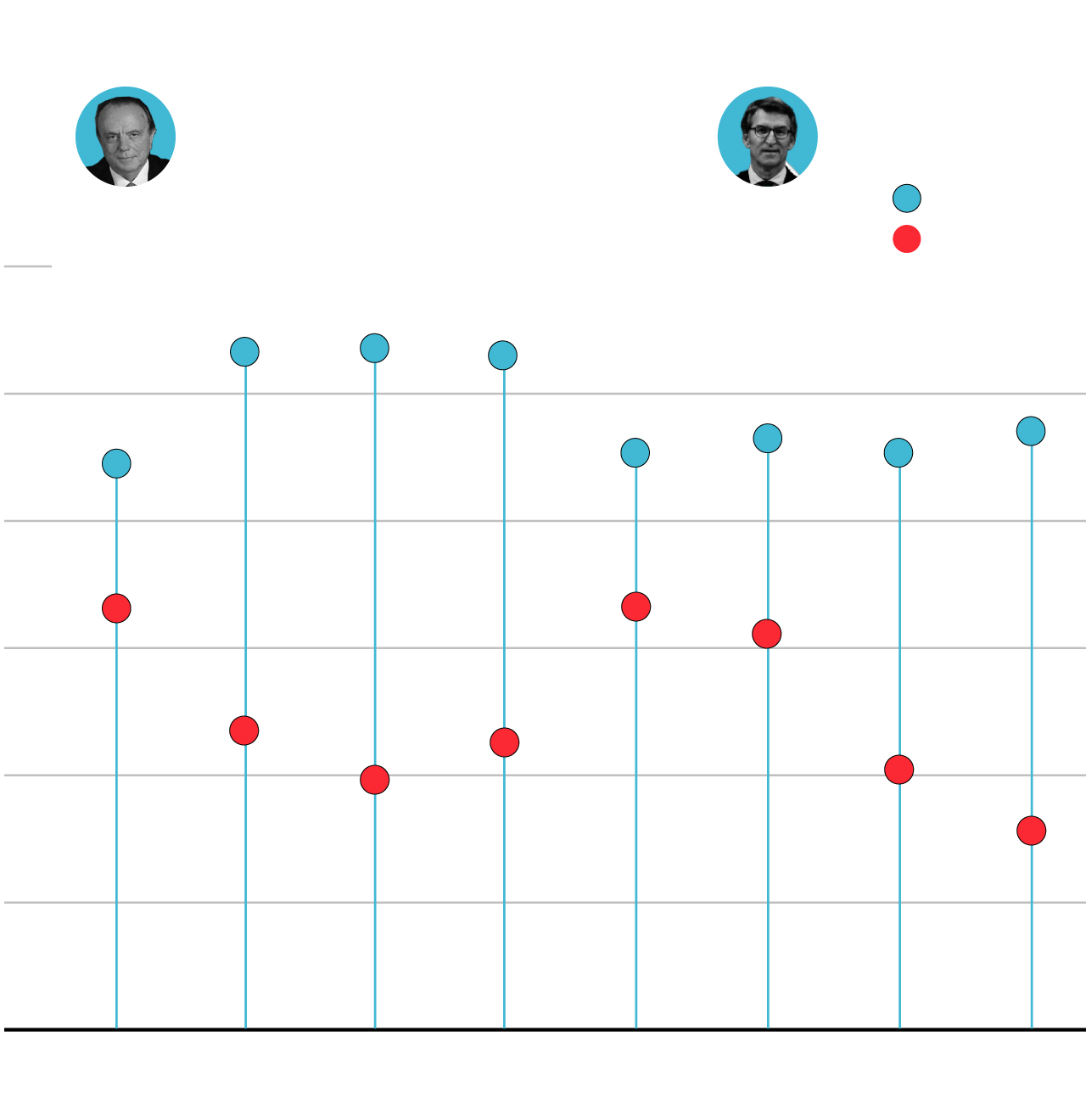 Alberto Núñez Feijóo no suele identificarse con el PP. Sus campañas son una suerte de acertijo en busca del logo del partido. En esta, la cartelería lo identifica con Galicia como si ambos formaran un ente indisoluble; una comunión que ningún otro candidato pudiese alcanzar. Por eso pide el voto para su tierra, como si la cosa no fuera con él y, mucho menos, con el PP. No obstante, la forma presidencialista con la que parece querer emular a su predecesor, Manuel Fraga, esconde, más que el logo, su debilidad: la fragilidad de un PPdeG que en las municipales pasadas perdió las principales alcaldías y las cuatro diputaciones y tuvo que entregarse a un controvertido político, líder de un minoritario partido local, Gonzalo Pérez Jácome, para salvar la de Ourense. El histórico granero de votos del PP, gestionado por el hijo-sucesor del “cacique” Baltar, el enemigo interno de Feijóo, se desinfló. Salvar los muebles supuso para el presidente sostener a su principal rival interno.