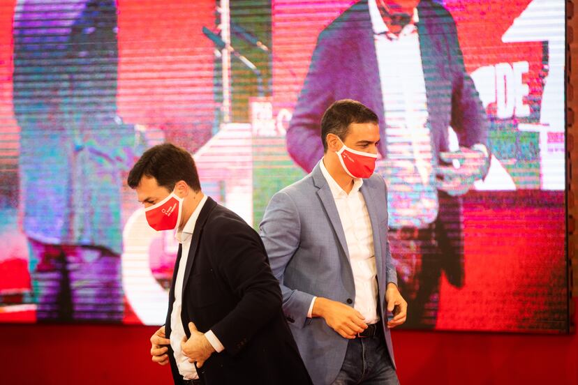 El complicado devenir económico tras la crisis del coronavirus marcó buena parte del discurso del jefe del Ejecutivo, que vaticinó tiempos turbulentos en lo económico y en lo social. Para la gestión de ese complejo futuro, el presidente invitó a escoger entre “el sálvese quien pueda” con el que identificó al PP o el “que nadie se quede atrás” que atribuyó al PSOE. Estos son, según Sánchez, los dos modelos que se miden las caras ahora en estas elecciones autonómicas que se celebran el próximo domingo en Galicia y el País Vasco pero que le sirvieron para extender ese dilema a nivel general.