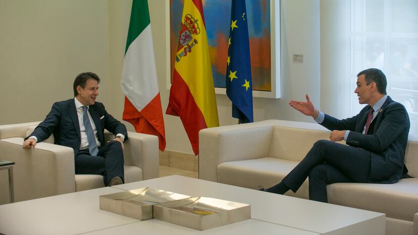 España e Italia unen de nuevo sus fuerzas en una gran batalla europea. Como en 2012, cuando Mariano Rajoy y Mario Monti se aliaron para frenar la ola de austeridad y forzar la intervención del Banco Central Europeo, ahora Pedro Sánchez y Giuseppe Conte, que se han reunido hoy en La Moncloa, suman fuerzas para torcer el brazo de los llamados frugales ―Holanda, Suecia, Dinamarca, Austria― que se resisten a aceptar la propuesta de la Comisión de un gran fondo de recuperación europeo de 750.000 millones de euros, 500.000 de ellos en transferencias directas que no tienen que ser devueltas, y 250.000 en préstamos.