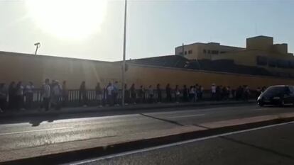 El sol pega fuerte en la comisaría general de extranjería de Aluche, en Madrid, un edificio amarillo de ventanas azules en mitad de la nada. Bordeando el enorme complejo hay estos días cientos de personas que aguardan colas de varias horas con la única sombra de una parada de autobús. Hay 34 grados, no hay donde comprar agua, pero sí un seguro de salud que ofertan un par de comerciales durante la espera. Los policías inspeccionan la cola de vez en cuando dando instrucciones y despejando las preguntas de los inmigrantes de forma tosca.
