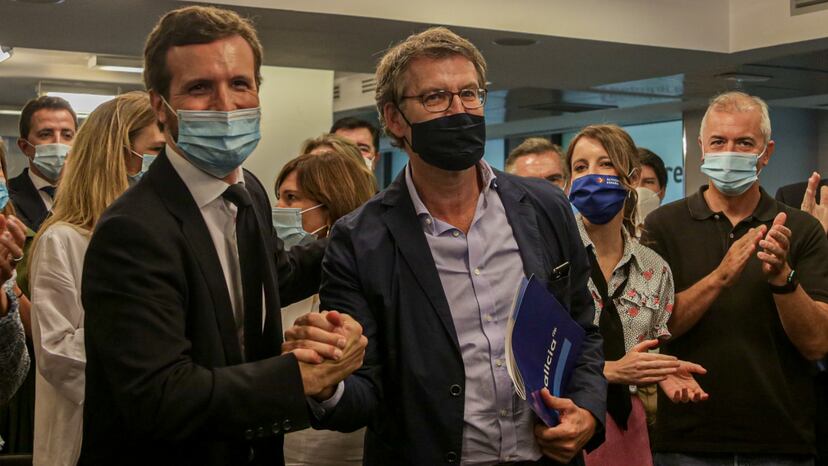 Casado quiso incorporarse al éxito en Galicia —”es la receta del PP aquí y en todas partes, ahora y siempre”— y aseguró ante Feijóo —que ocultó las siglas durante toda la campaña— que su victoria es “el mejor aval” para que el PP llegue “cuanto antes al Gobierno de España”. Paralelamente, responsabilizó a la baja participación, al éxodo de “150.000 vascos que tuvieron que emigrar por el zarpazo del terrorismo” y a Pedro Sánchez, “legitimador de Bildu”, de los malos resultados de su apuesta personal en Euskadi. Carlos Iturgaiz perdió en coalición con Ciudadanos casi la mitad de los votos del PP en 2016.