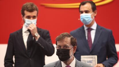 Fernando Martínez-Maillo, que fue coordinador general del PP, y apagafuegos interno hasta que Pablo Casado decidió apartarlo y enviarlo al Senado, ha reunido este viernes al líder del partido con el expresidente Mariano Rajoy y el exministro de Economía Luis de Guindos. Lo hizo en la presentación de su libro, El Banco Central Europeo, propuestas de reforma, cuyos beneficios irán al Banco de Alimentos. En el turno de preguntas, las intervenciones han conducido a la complicada situación del rey Juan Carlos y el debate interno abierto en el PP sobre la estrategia de Casado.