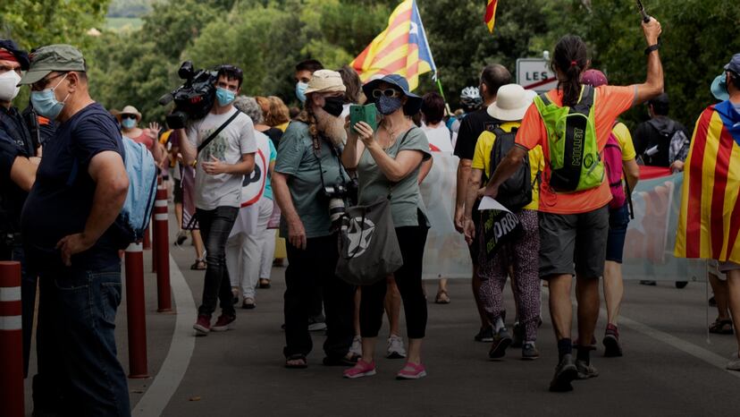 Los reyes Felipe VI y doña Letizia visitaron este lunes el monasterio de Poblet, en Tarragona, durante un viaje relámpago a Cataluña que forma parte de la gira que realizan por distintas regiones españolas, tras levantarse el estado de alarma por la pandemia del coronavirus. Varios grupos de manifestantes, luciendo simbología independentista, trataron de boicotear la visita real y lograron sortear los filtros policiales y llegar hasta las puertas del monasterio, d...