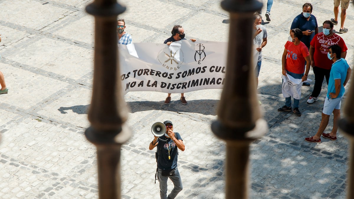La pitada se enmarca en las protestas que están realizando estos días los trabajadores del ámbito taurino, que se consideran discriminados por parte del Ministerio de Trabajo al no estar incluidos en las ayudas especiales que, debido a la crisis del coronavirus, contempla el decreto ley del 5 de mayo para los artistas en espectáculos públicos.