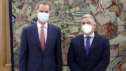 En las imágenes que han sido distribuidas por La Zarzuela –no se ha permitido el acceso de los medios de comunicación, como era habitual en este tipo de audiencias— se puede ver al Rey de buen humor. Mientras se acerca al jefe de la diplomacia uruguaya, que le espera en el salón de audiencias, este último bromea moviendo los brazos y los codos como si dudara de qué forma saludarse debido a la pandemia, antes de que ambos se intercambien una palmada en la espalda.
