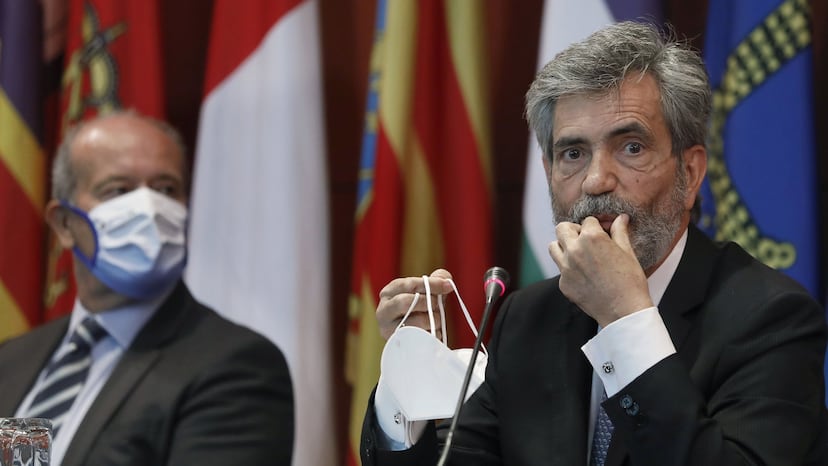 El ministro de Justicia, Juan Carlos Campo, ha afirmado este lunes que el Consejo General del Poder Judicial (CGPJ) está “en descomposición” y que debería medir sus actos porque estos “tienen incidencia”. Así se ha pronunciado en una entrevista en RNE en la que ha confirmado que el Gobierno intentó aplazar el acto de entrega de los despachos a los nuevos jueces, celebrado el pasado viernes en Barcelona, y que el presidente del CGPJ, Carlos Lesmes, se negó a hacerlo. Sin embargo, un portavoz del CGPJ ha asegurado a EL PAÍS que no hubo ninguna llamada a Lesmes pidiendo retrasar el acto de Barcelona. El ministro ha reconocido además que la inminencia de la publicación de la sentencia sobre la inhabilitación del presidente de la Generalitat, Quim Torra, y la cercanía del tercer aniversario del referéndum ilegal del 1 de octubre de 2017, “desaconsejaban” la presencia del rey Felipe VI en el acto.